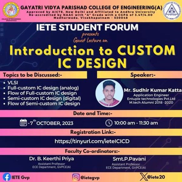 introduction to Custom IC design to the Students and one-one interaction with the speaker