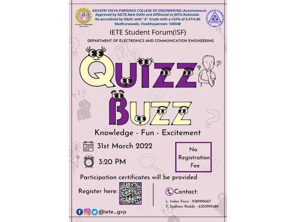 Conducted a Quiz competition(Quizz Buzz) related to trending topics and coding on 31st March 2022.