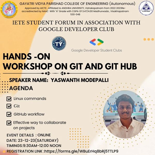 A Hand-on workshop is to introduce GIT and GIT HUB to the students and to provide use and benefits of this platform with a very interactive session.